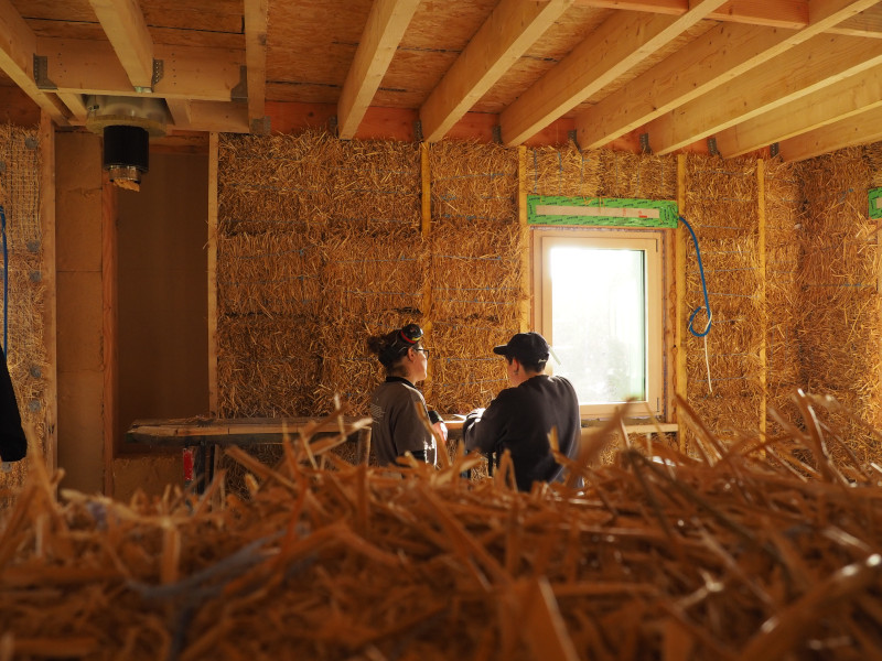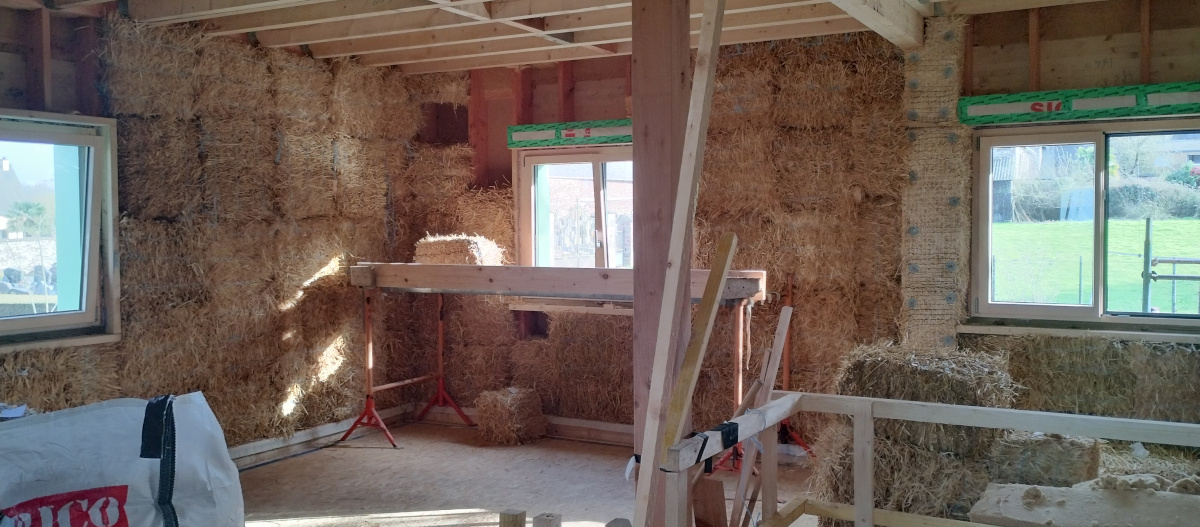 Corps d'enduits en terre sur bottes de paille – Treffendel (35 – Ille et Vilaine)