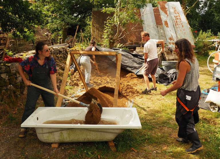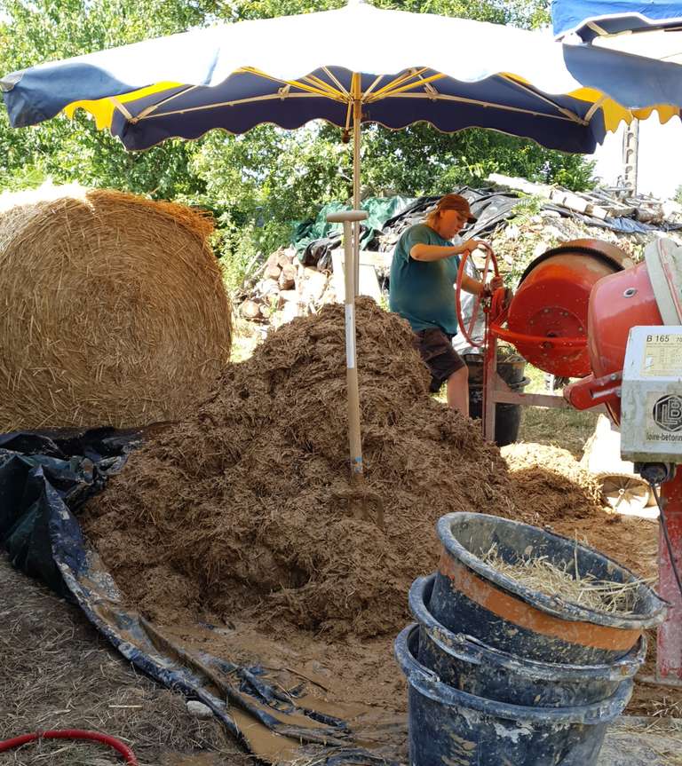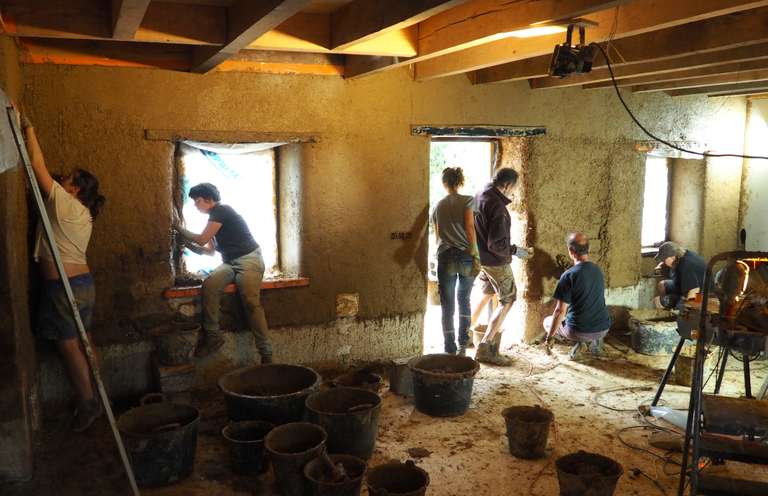 En juin 2024 un chantier participatif d'une semaine a été organisée pour faire une dalle chaux-liège. En plus de la réalisation de la dalle, ces quelques jours m'ont donné une première expérience de l'accueil d'une équipe de volontaires. Cela s'est fait dans une ambiance joyeuse et pleine d'allant, ce qui me rend confiante pour l'accueil d'une nouvelle équipe pour ce prochain chantier.