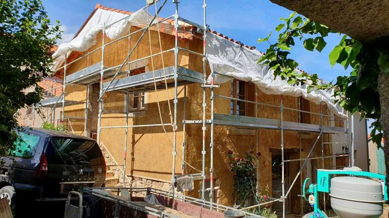 2025 - Enduits terre-paille-chaux en façade, rénovation - Ambierle (42)