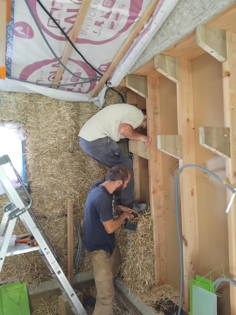 - la vérification des bottes de paille, leur redécoupe, leur pose