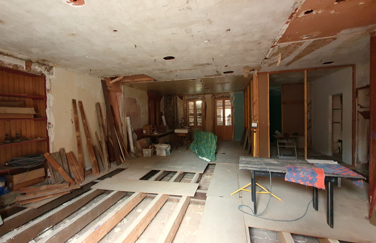Après quasiment 9 mois de démolition et d’assainissement de la maison, nous avons enfin pu commencer à re-construire, en commençant d’abord par le rez de chaussée, puis la pièce commune où nous allons réaliser ce chantier.